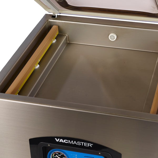 The VacMaster VP545 is a large capacity machine ideal for high volume commercial and food service operations looking for optimum production with limited space requirement. This unit has a spacious chamber featuring two seal bars for increased production. The VP545 has an optional gas flush which is capable of adding an additional anaerobic gas mixture, which allows for packaging delicate items such as pasta and chips.